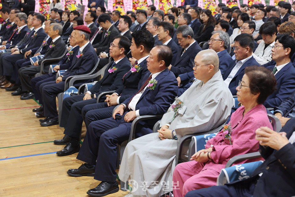 이날 행사장에는 홍주고 개교 50주년을 축하하기 위해 이주엽 대륭그룹 회장과 학교법인 신암학원 이종원 이사장을 비롯한 유희일·최연섭 고문, 박광래·조복연 이사, 고철민·인화식 감사, 임광섭 홍성교육장, 이혜숙 혜전대학교 총장, 김현철 폴리텍대학교 충남캠퍼스 학장, 윤덕수 충남사립학교행정실장협의회장, 박우승 충남사학법인협회 고문, 전영남 홍주고등학교총동문회장과 김기찬·이민우·장순도·배상목·김상현 고문, 전용덕 홍주장학회 이사장, 표미자 학부모협의회장, 장건용 홍주고등학교 동문골프회장, 이상근 충남도의회 의원, 최기생 홍성낙협 조합장, 육통 홍성군노인종합복지관장, 이성희 헤아림후원회장 등 내빈이 참석해 자리를 빛냈다.