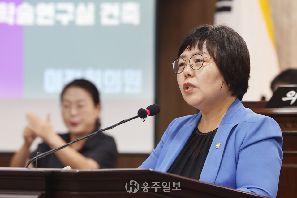 이정희 의원은 군정질문에서 △홍주읍성 여가문화 공간 조성 및 유지 문제 △고암학술연구실 건립 및 관리 점검에 대해 질의했다.