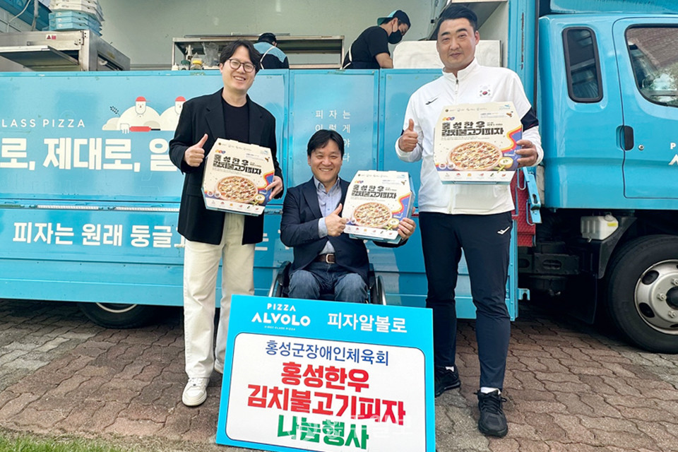 한우 가격 폭락으로 울상짓는 축산농가들을 위해 홍성군과 손잡고 홍성한우 김치불고기 피자를 출시한 피자알볼로 이재욱 대표가 지역의 장애인들을 위해 피자를 제공했다. 저작권자 © 홍주일보 무단전재 및 재배포 금지 김영정 기자 다른기사 보기 페이스북 카카오톡 URL복사 기사공유하기