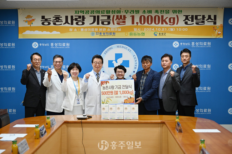 홍동농협(조합장 주정산)에서는 지난 21일 홍성의료원(원장 김건식)은 21일 홍성의료원 소회의실에서 지역 공공의료 활성화와 지역 농산물소비 촉진을 위해 우리쌀 1000kg(약 500만 원)을 전달했다.