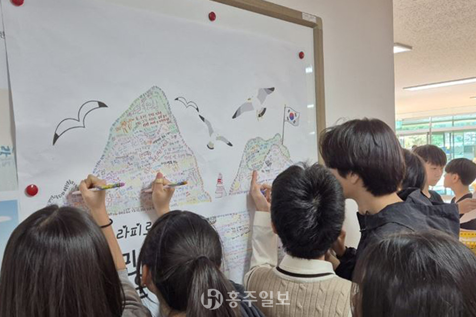 내포중학교(교장 이정순)는 지난 21일부터 25일까지 독도의 날 기념 독도교육주간을 운영했다. 독도교육주간은 학생들이 우리 땅 독도를 올바르게 이해하고, 독도 주권 수호 의지를 다질 수 있는 자리로 있도록 마련됐다.