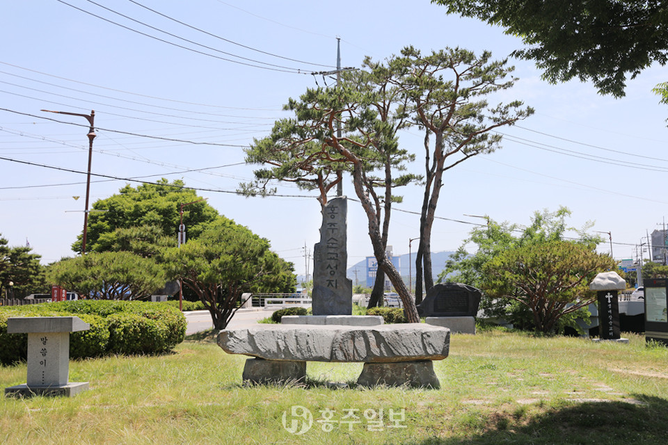 홍주순교성지 비 앞면에는 ‘천주교 홍주순교성지’라 썼고, 뒷면에는 ‘이곳 홍주골은 믿음을 지킨 성지로 충청 최초 순교자가 승천한 곳 이 숭고한 넋은 평화의 빛이 되리라’라는 글이 새겨져 있다. 아울러 순교비 옆 표지석에는 ‘이곳은 순교의 정신으로 내 나라 내 고장 홍주의 얼을 견고히 하는 거멀못이 될 것임에 삼가 순교자를 현양하는 마음으로 이 비를 세운다’라고 적고 있다. 이곳 홍주순교성지 공원에는 십자가의 길을 비롯해 순례객들이 언제든 찾아와 순교자의 삶을 묵상할 수 있는 곳이다.