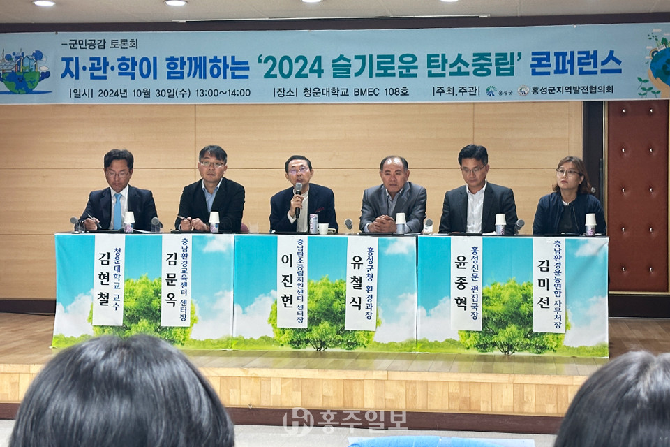 홍성군의 균형발전을 위한 탄소중립 실천계획과 대안 마련을 위한 ‘2024 슬기로운 탄소중립 콘퍼런스와 박람회’가 지난달 30일 청운대학교에서 열렸다.<사진>