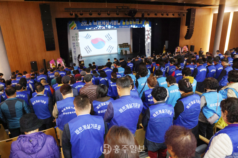 바르게살기운동 홍성군협의회(회장 전헌수)는 지난 8일 청운대학교 신애관 강당에서 ‘2024 바르게살기운동 홍성회원대회’를 성황리에 개최했다.<사진>