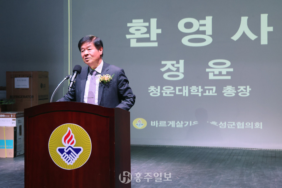 “소멸의 위기에 처한 ‘지역사회’와 통폐합 위기에 놓인 ‘지역대학’은 서로 공존해야만 합니다. 그래서 먼저 지역사회의 일원으로서 바르게살기운동 홍성군협의회가 지역대학의 문에 먼저 노크를 하고, 이곳에서 이번 홍성회원대회를 치르게 됐습니다. 앞으로도 지역사회와 지역대학이 함께 상생하길 기원합니다.”