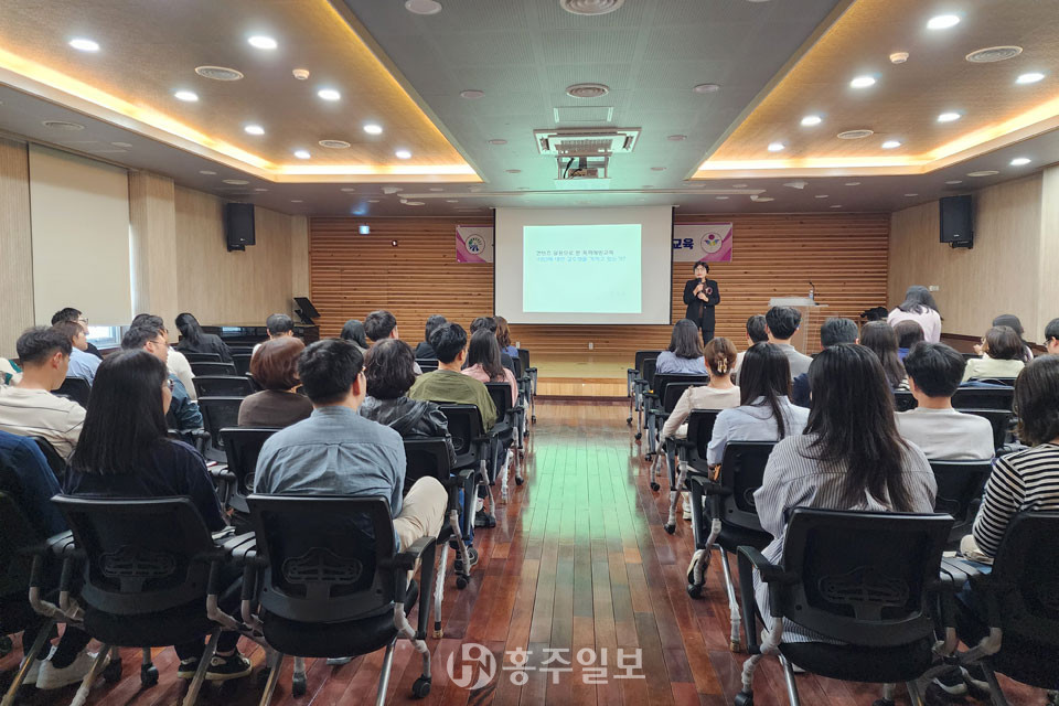 홍성군이 지난 11일 홍주문화회관에서 공직사회 내 성인지 감수성을 높이고 상호 존중하는 근무환경을 만들기 위해 전 직원을 대상으로 4대 폭력(성희롱·성폭력·성매매·가정폭력) 예방교육을 실시했다.