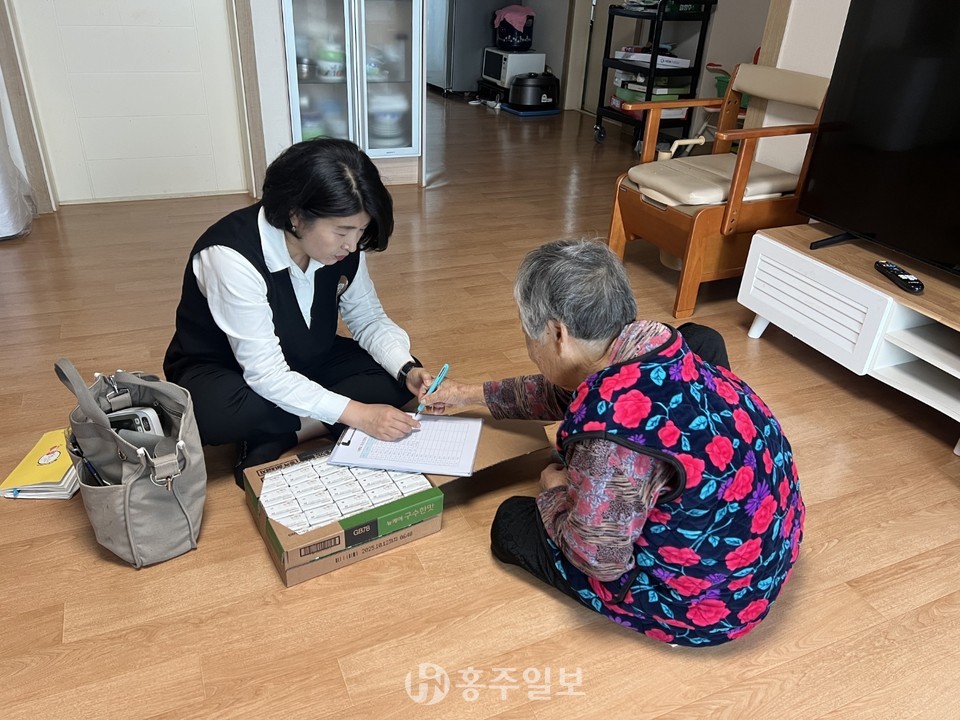 홍성군보건소(소장 김정식)가 보건의료 취약 어르신들의 건강관리를 위해 지난 26일 독거노인 등 취약계층 어르신 262명을 대상으로 균형영양음료를 직접 전달하고 건강관리 교육을 실시했다고 전했다. <사진>