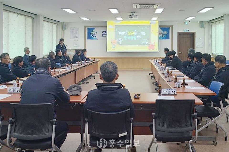 은하면은 지난 26일 이장단과 면 직원 43명이 참여한 가운데 ‘탄소중립 실천 공동 선언식’을 개최하고 2050 탄소중립 실천을 위한 결의를 다졌다. <사진>