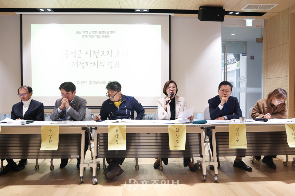 [홍주일보 홍성=오동연 기자] 충남지역의 난개발과 환경오염을 방지하기 위한 조례 제정과 개정을 어떻게 할 것인지 고민하는 자리가 있었다. 지난 20일 충남공간마루에서 ‘충남 지역 난개발·환경오염 방지 조례 제·개정 토론회’가 열렸다.<사진>