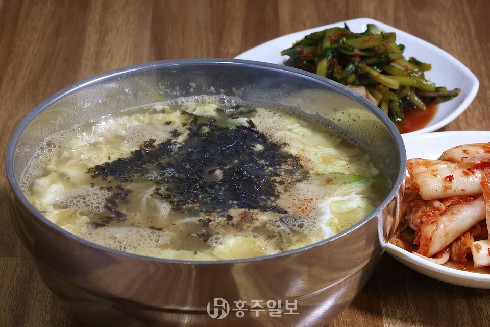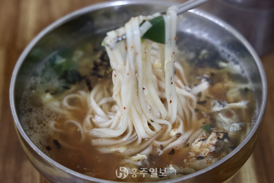비법이 숨겨진 멸치 육수에 제철 해물 그리고 고명처럼 뿌려진 김 가루가 마음까지 따스하게 물들인다. 충청도 사람이라면 국물을 한 입 뜨자마자 “구수룸허다”는 말이 절로 나올 것이다. 여기에 면발은 육수와 같은 식감으로 착각할 만치 잘 어우러져, 몇 번 씹지 않아도 부드럽게 넘어가는 탓에 게눈감추듯 먹게 된다.