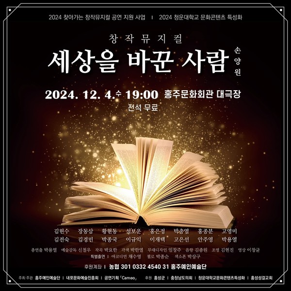 이번 공연은 충남도와 홍성군의 ‘2024 찾아가는 창작뮤지컬 공연 지원사업’과 ‘청운대학교 문화콘텐츠 특성화 사업’의 일환으로, 한센병 환자들을 위한 요양소 ‘애향원’에서 헌신했던 항일 독립운동가이자 개신교 장로회 목사인 손양원 목사의 감동적인 삶을 그려낸다.