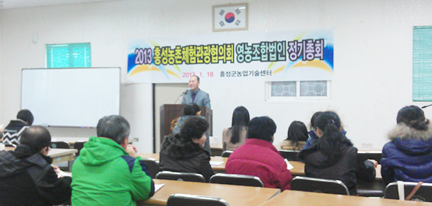 홍성농촌체험관광협의회 영농조합법인(회장 전병환, 이하 체험관광협의회)의 새해 첫 정기총회가 지난 18일 농업기술센터에서 조합원 30여명이 참석한 가운데 열렸다.