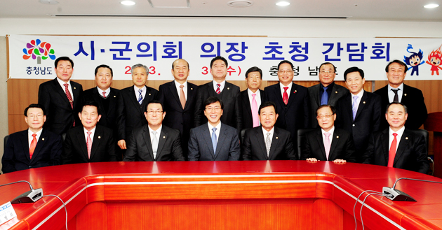 지난달 30일 도청 중회의실에서 이준우 도의회 의장, 김복만 시·군의회 의장협의회장(금산군의회 의장) 등 도내 15개 시·군의회 의장이 참석한 시·군의회 의장 초청 간담회가 열린 가운데 도정 현안 설명을 청취하고 대화를 나누며 내포 시대 충남 발전을 모색했다.