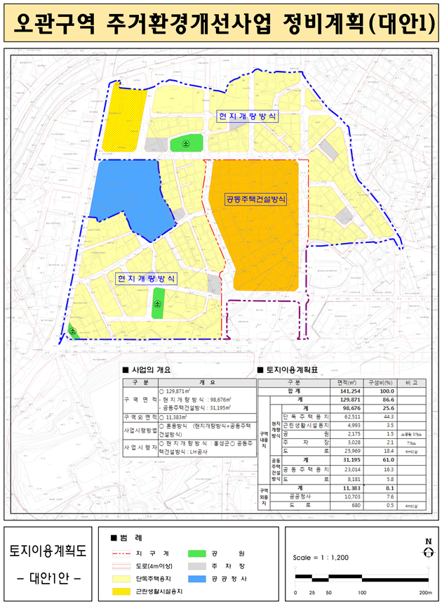이와 관련해 주민들은 26일 설명회에서 홍성군이 △기존 12만9871㎡ 대상지 중 9만8676㎡는 현지개량방식, 3만1195㎡ 면적은 공동주택건설방식을 도입하는 혼합형에 대한 설명을 듣고, 130여명의 참석자 중 89명에게서 동의서를 받았다. 기존 공동주택방식의 개선사업 추진이 불가능해진 상황에서 일부라도 공동주택방식을 도입하고 나머지는 구역은 현지개량으로 도로, 공원, 주차장 등을 개설하는 방식에 최종 합의 한 것이다.
