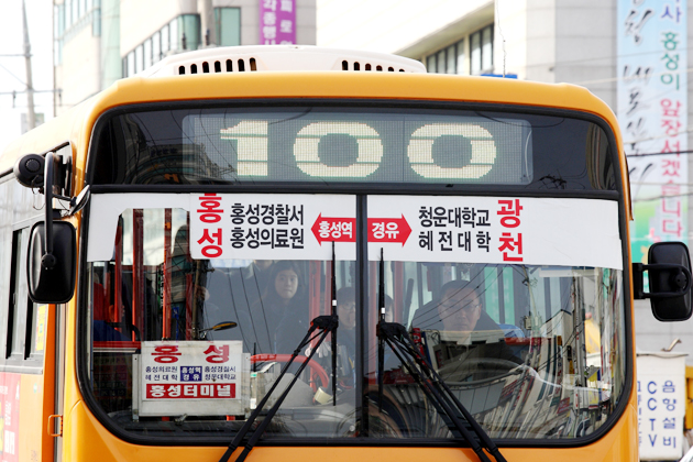 이에 군은 홍성~광천 간 직선 노선을 100번 번호를 부여해 하루 22회 운행하고, 홍성~주공아파트~광천 노선에 120번 번호로 하루 39회, 홍성~홍성역~광천 노선에 101번 버스 하루 12회 운행, 홍성~홍성역~주공아파트~광천 노선인 121번 버스는 하루 19회씩 각각 운행되도록 조정했다. 노선번호는 100번은 홍성~광천, 20번은 주공아파트, 1번은 홍성역을 의미한다.