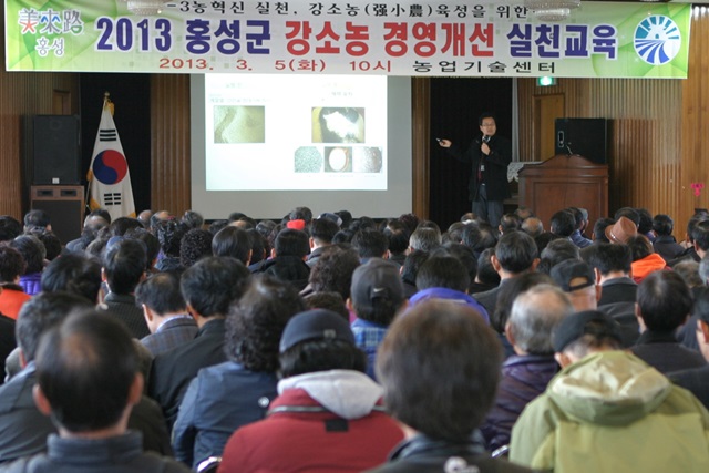 홍성군은 지난 5일 농업기술센터 대강당에서 작지만 강한 농업인 육성을 위한 강소농 경영개선 실천교육을 농업인 300여명이 참가한 가운데 진행했다.