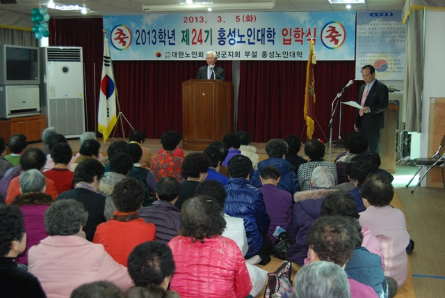 대한노인회홍성군지회(회장 이범회) 부설 홍성노인대학(학장 이병칠) 제24기 입학식이 지난 5일 홍성군노인종합복지관 대강당에서 열렸다.