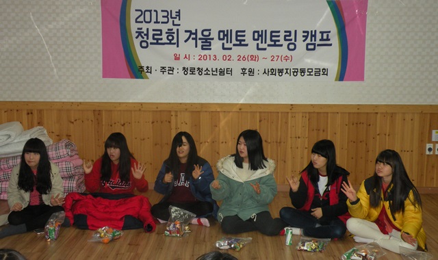청로청소년쉼터(회장 이철이)는 지난 26일부터 27일 양일간 용봉산자연휴양림에서 청소년 쉼터입소자 및 저소득가정 청소년들을 대상으로 ‘2013년 청로회 겨울 멘토 멘토링 캠프“를 사회복지공동모금회의 후원으로 개최했다.