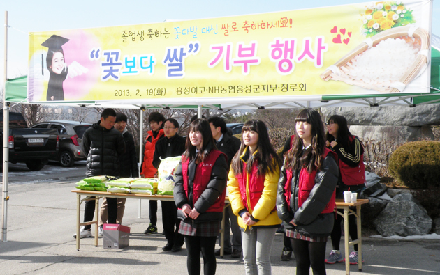 특히 이번 행사는 학교, 농협중앙회 홍성군지부, 사회복지법인 청로회 세 단체가 연계한 나눔 활동이었다는데 더 큰 의의가 있다. 홍성여고 최종걸 교장은 "한순간 아름답지만 곧 시드는 꽃다발보다 어려운 분들에게 실질적으로 쌀을 드릴 수 있는 쌀 기부 봉사가 훨씬 보람 있고 아름답다"며 "작은 실천을 통해 남을 도울 수 있는 기부문화가 더욱 확산되길 바란다"고 말했다.