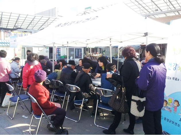 군 보건소 직원들은 지난 11일 홍성장에서 상인 및 주민 220명을 대상으로 기초검사와 건강 상담을 진행했으며, 기초검사 결과 고혈압 36명, 당뇨 11명이 조기발견 돼 집중 개별상담과 치료를 위한 병원 안내 등의 관리를 받았다.
