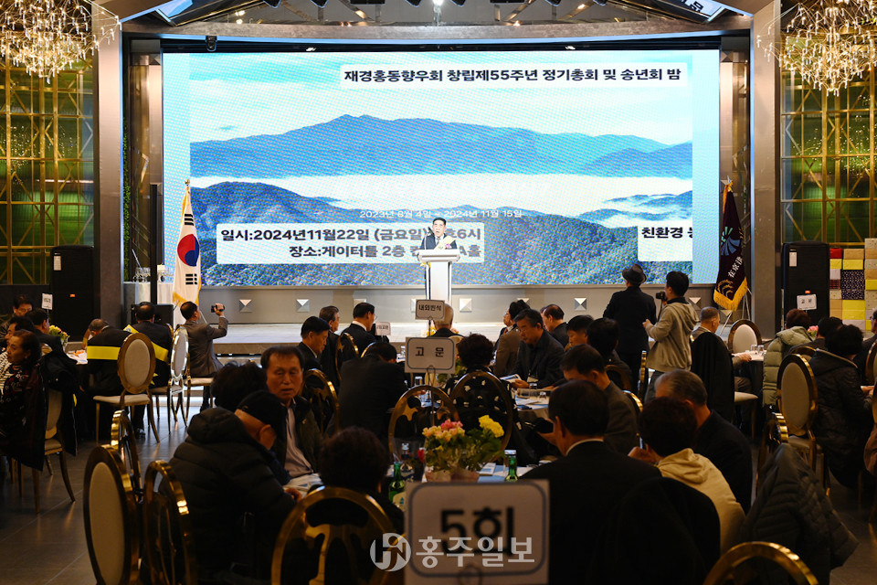 [홍주일보 서울=한기원 기자] 재경홍동향우회(회장 이병일)는 지난 22일 서울 케이터틀 컨벤션A홀에서 ‘창립 제55주년 재경홍동향우회 정기총회 및 송년의 밤’행사를 개최했다.