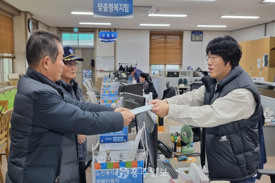 서부면은 대한노인회 홍성군지회 서부면분회(회장 정홍모)가 지난 2일 지역 내 저소득 가정을 돕기 위해 성금 100만 원을 전달했다고 밝혔다.<사진>