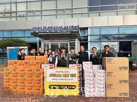 이날 행사에서는 학생회 임원과 지도교사들이 광천읍 행정복지센터를 방문해 김, 라면, 두유 등 약 150만 원 상당의 물품을 직접 전달했다.