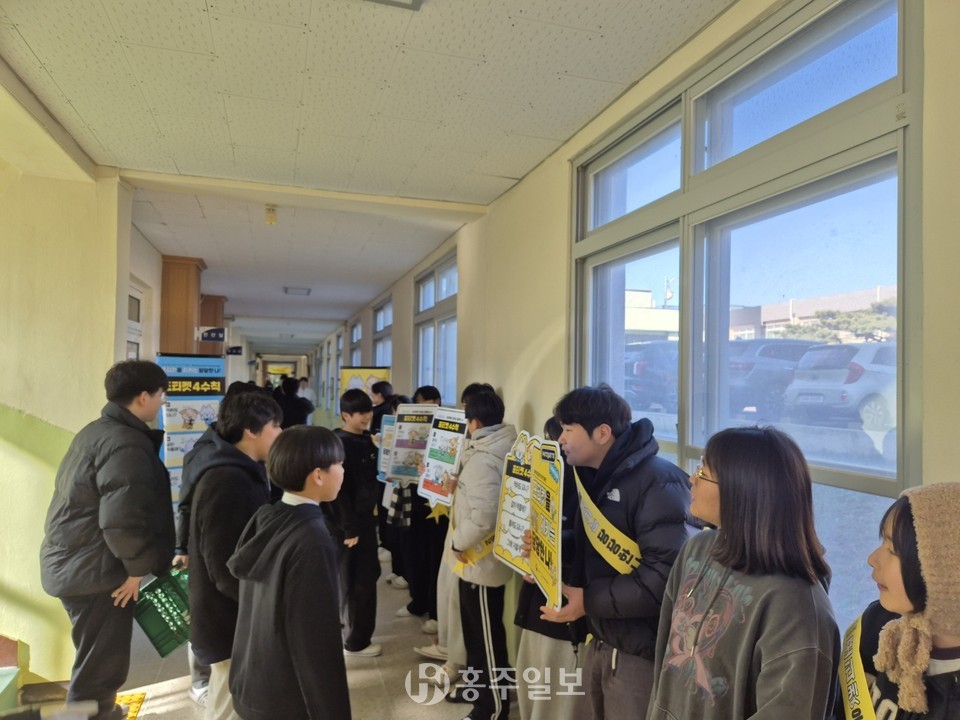 예산 삽교중학교(교장 김윤숙)에서는 지난 3일 점심시간을 이용해 전교생을 대상으로 학교 내 불법 촬영 근절, 예방 환경 조성 캠페인을 실시했다.<사진>