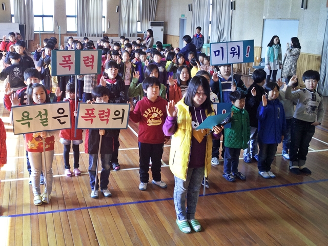 금당초등학교(교장 전병세)는 지난 3일 초롱관에서 학교폭력 ‘힐링학생봉사동아리’ 선포식을 가졌다. 봉사동아리는 욕설 없는 학교 만들기 캠페인, 왕따 없는 학교 문화 만들기, 학교 주변 봉사활동, 불량 언어 학생 선도 등 다양한 활동들을 펼칠 계획이다.