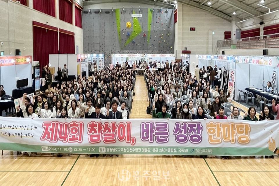 충남교육청(교육감 김지철)은 지난달 26일 충남교육청안전수련원에서 보건교사 330여 명이 참석한 가운데 보건교육 성과를 공유하고 소통하는 자리인 ‘제4회 참살이, 바른성장 한마당’을 개최했다.<사진>