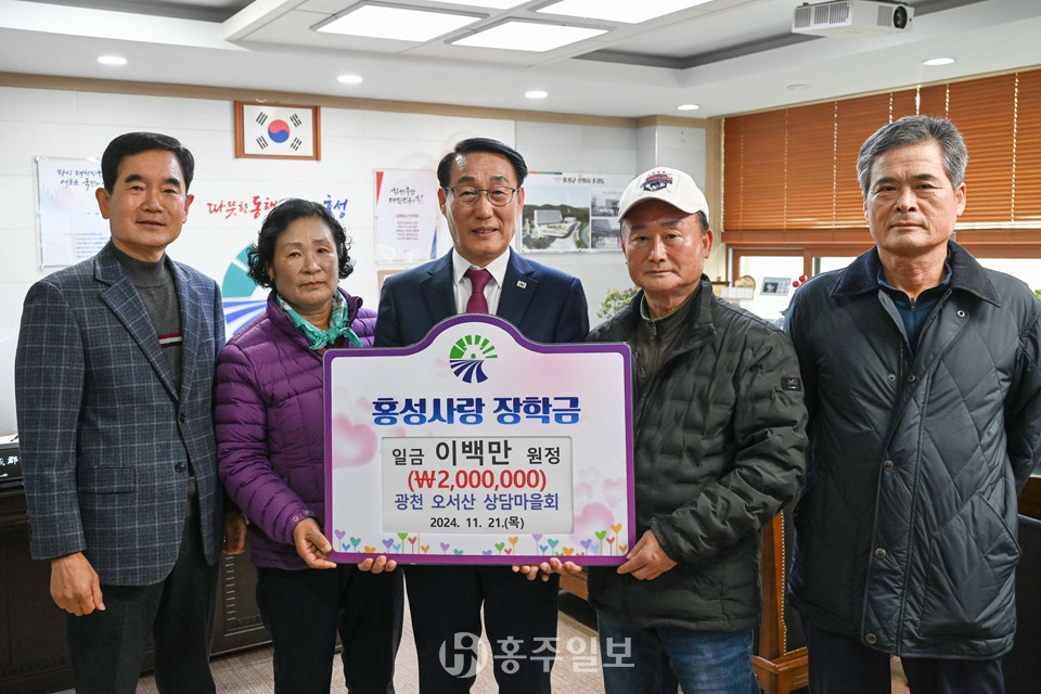 광천읍 상담마을회(이장 박원순)는 지난 21일 홍성군청 군수실을 방문해 행복 농촌 콘테스트 마을만들기 분야 국무총리상 시상금 중 200만 원을 우리지역 학생들의 미래를 위해 지원하고 싶다며 홍성사랑장학금으로 기탁했다.