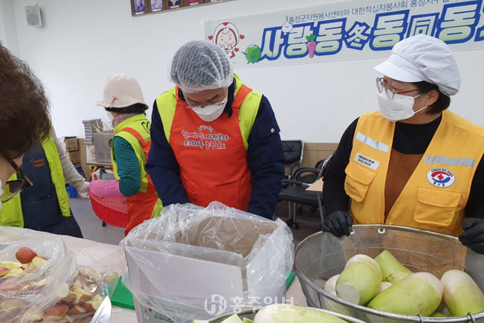 ㈔홍성군자원봉사센터(센터장 방은희)는 지난 19일 대한적십자사 홍성지구협의회 봉사관에서 읍·면·대학 자원봉사 거점캠프 활성화 사업 일환으로 자원봉사자 30명과 함께 동치미 210박스를 제작해 관내 취약계층과 소외 가정에 전달했다.
