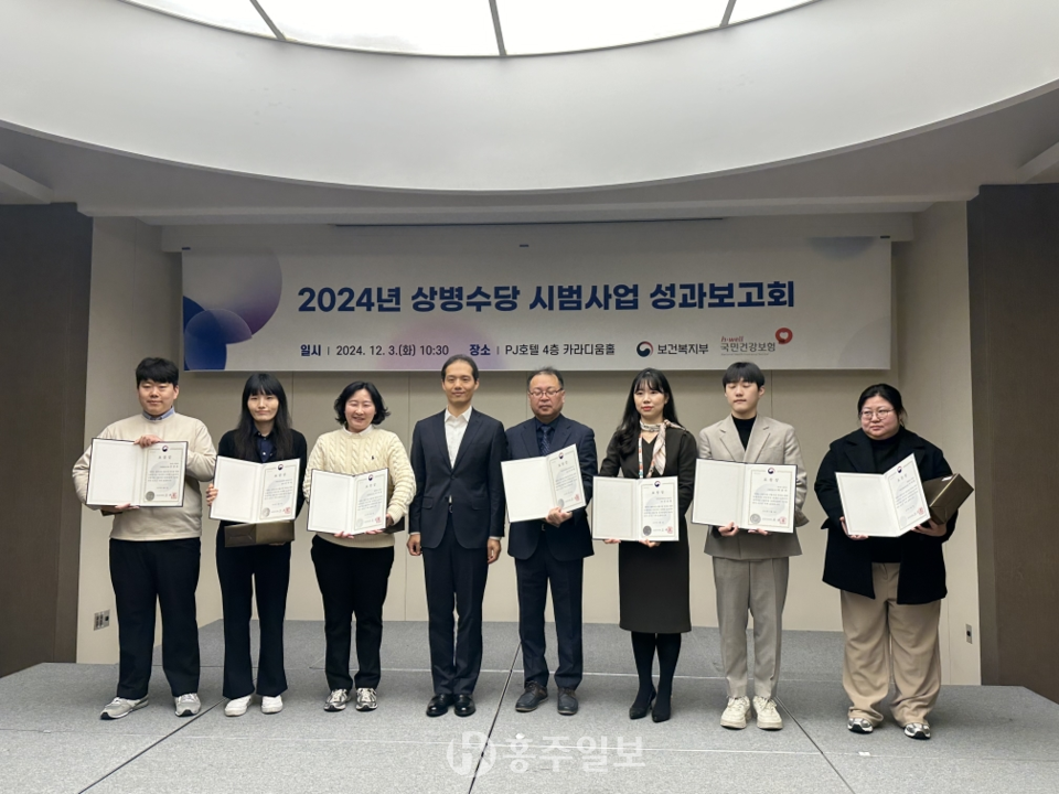 홍성군이 지난 4일 “군 단위 전국 최초로 공모 선정된 상병수당 시범사업(3단계)과 자활사업 활성화의 성과를 인정받아 보건복지부 장관 표창을 수상했다”고 밝혔다.<사진>