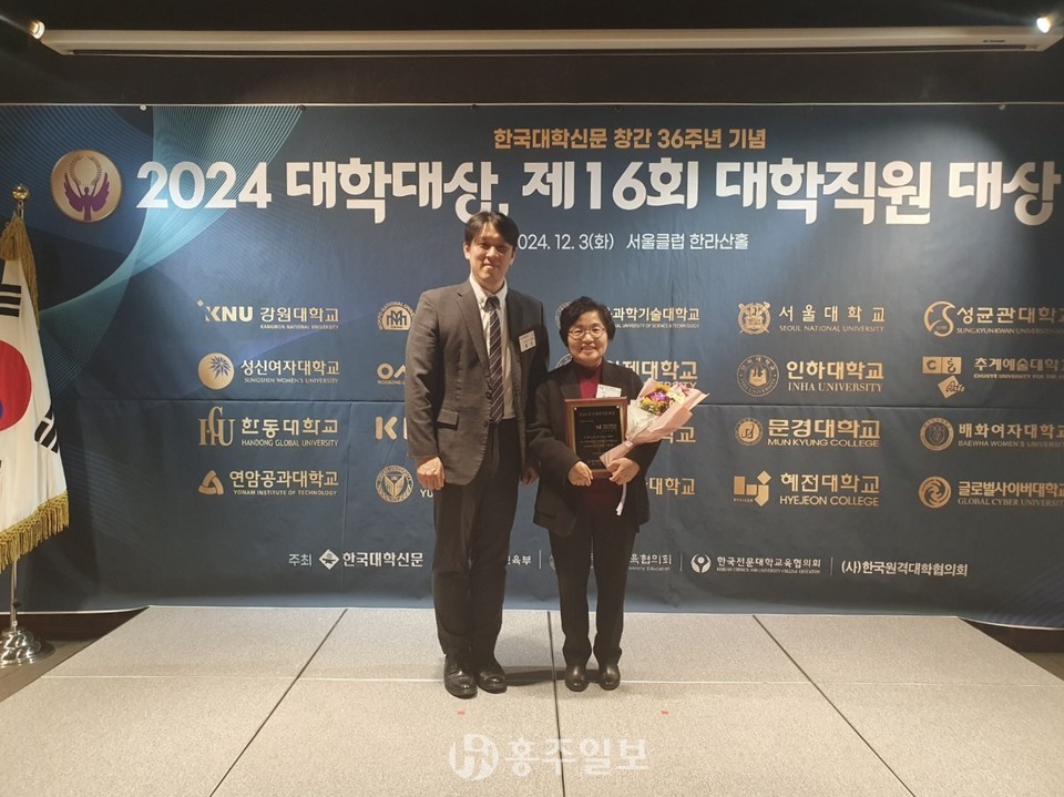 혜전대학교(총장 이혜숙)가 지난 3일 서울클럽 한라산홀에서 개최된 ‘2024 한국대학신문 대학 대상’ 시상식에서 ‘지역 협력’ 우수 대학으로 선정됐다.<사진>