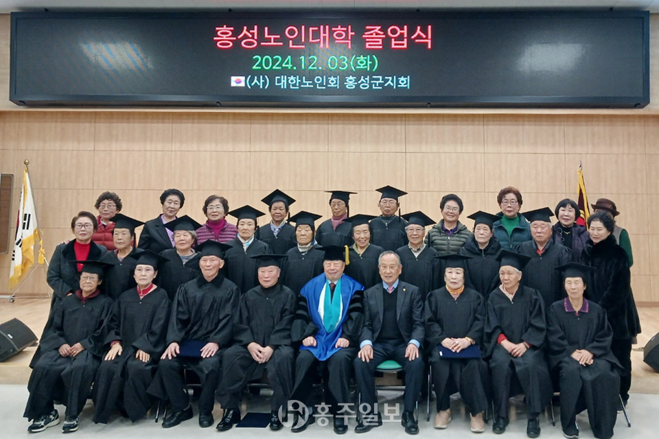 대한노인회 홍성군지회(지회장 조화원)는 지난 3일 대한노인회 대강당에서 홍성노인대학 34회 졸업식을 가졌다.<사진>