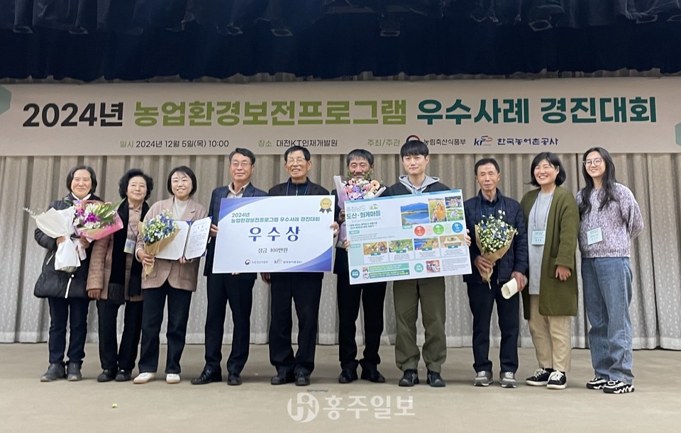 홍성군이 지난 5일 농림축산식품부가 주최하고 한국농어촌공사가 주관한 ‘제2회 농업환경보전프로그램 우수사례 경진대회’에서 우수상을 수상하며 친환경 농업의 새로운 가능성을 제시했다.<사진>