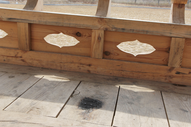 전통정자도 방치되고 있기는 마찬가지였다. 홍주성 역사관 앞으로 조성된 전통정자 인근에는 누군가에 의해 파손된 조명 기구와 각목들이 방치돼 있었고, 무엇보다 '신발을 벗고 출입해 달라'는 안내판이 무색할 정도로 진흙에 더럽혀져 있었다. 정자 마루의 상태는 더 심각했다. 직경 20cm 가량으로 불에 탄 자국이 남아 있는 상태로, 누군가 마루 위에서 고의로 불을 지폈음을 짐작케 했다.