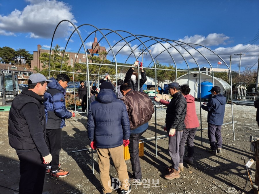 홍성군농업기술센터(소장 이승복)가 지난 5~6일 양일간 한국농업건설에서 진행한 ‘소형 비닐하우스 제작 교육’이 참가자들의 높은 호응 속에 성공적으로 마무리됐다.<사진>