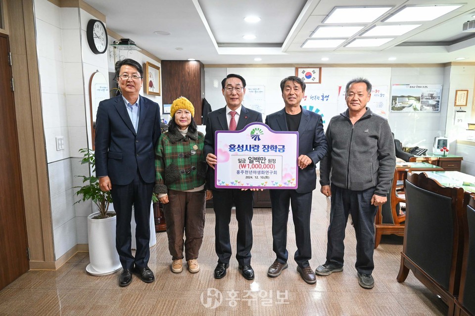 홍주천년야생화연구회(회장 이기성)가 지난 10일 홍성사랑장학금 100만 원을 홍성군에 기탁하며 지역사회에 훈훈한 귀감이 되고 있다.<사진>