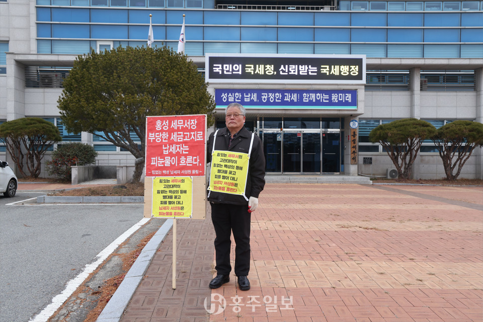 서 씨는 지난 2일부터 홍성세무서 앞과 덕산통 사거리에서 현수막을 걸고 피켓시위를 계속해 오고 있다. 그러나 조만간 홍성세무서 측이 서 씨에게 사과를 할지는 불투명하다.