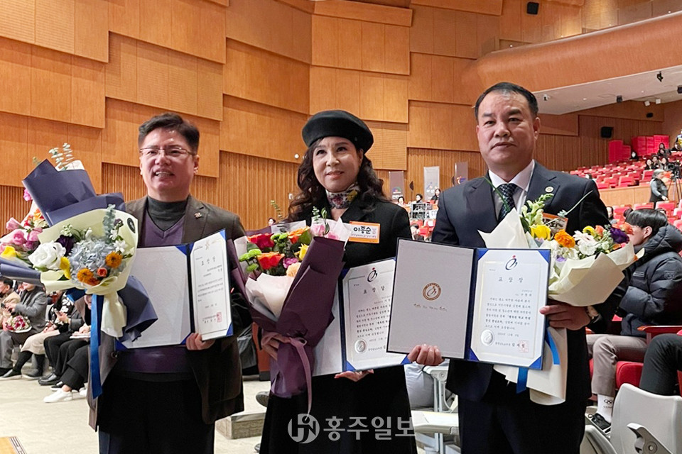 홍성군지역사회보장협의체 정윤 공동위원장이 지난 6일 열린 ‘충청남도 자원봉사자의 날 기념식’에서 자원봉사 활성화 유공을 인정받아 한국자원봉사센터협회장상을 수상했다. 이종순 부위원장과 구종회 위원은 충남교육감상을 받았다.