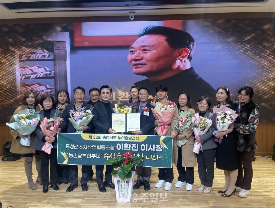 홍성군 6차산업협동조합 이환진 이사장이 지난 17일 충남도 대회의실에서 개최된 충청남도 농어촌발전상 시상식에서 농촌융복합 부문 수상자로 선정됐다.<사진>