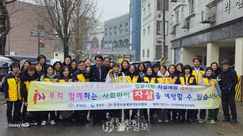 이번 캠페인은 홍성 전역에서 이뤄졌으며, 눈발이 날리는 궂은 날씨 속에서도 시장과 대학가, 마을 주변 일대에서 적극적인 홍보활동을 통해 자살 예방 상담 전화(109)를 알리고 자살 문제의 심각성과 생명의 소중함을 강조하는 인식 개선 활동이 중점적으로 이루어졌다.