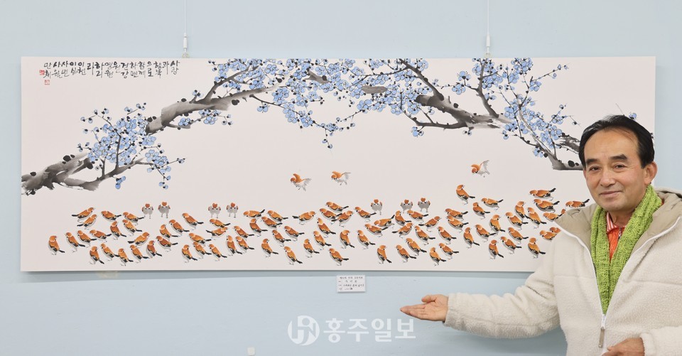 [홍주일보 홍성=이정은 수습기자] 만취(晩翠) 김용복 화백은 47년 만에 고향인 홍성으로 내려와 ‘만취 화실(홍성읍 월계천길 192)’을 꾸리고, 현재 제16회 개인전인 ‘만취(晩翠) 김용복 문인화 전(展)’을 진행 중이다.