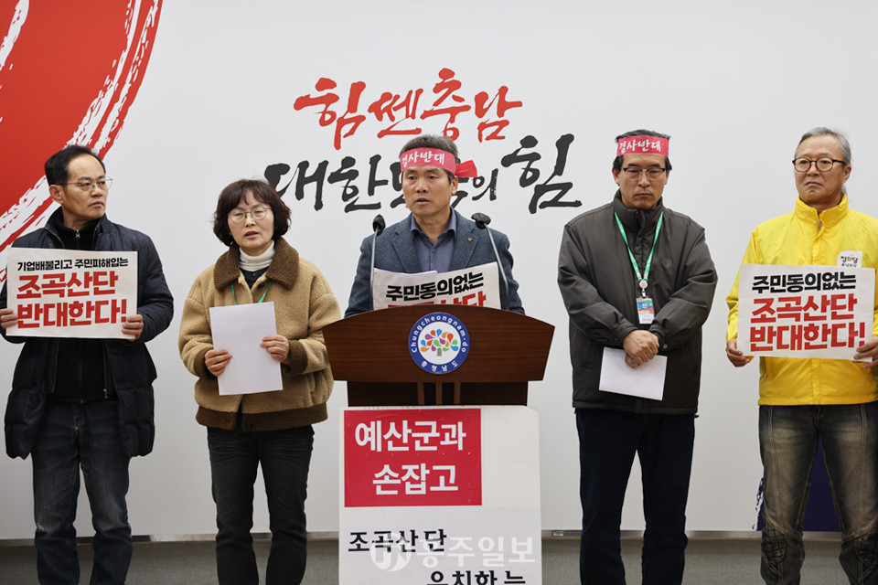 예산 신암면 조곡리2구·예림리1구 주민들이 예산군과 SK에코플랜트가 추진 중인 예산조곡그린컴플렉스일반산업단지 조성 반대를 주장하며 예산군청, 충남도청, SK 본사 등에서 집회와 기자회견을 열고 있다. 지난 12월 9일에는 예산군의 주도로 주민상생발전협의회를 구성하고 회의를 3회차 진행해온 것에 대한 규탄 기자회견을 열기도 했다.
