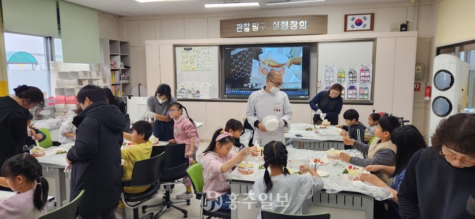 예산 양신초등학교(교장 박준양)는 지난 30일 학생 참여예산제로 기획된 케이크 디자이너 체험 프로그램을 성공적으로 운영했다.<사진>