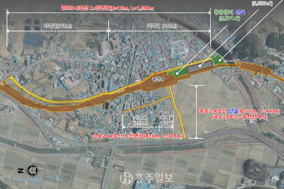 마지막으로 신진2리마을에서 광천신역사(소로 2-44호)에 이르는 길이 72m, 폭 8m(보도 없음)의 도로를 개설할 계획이다.