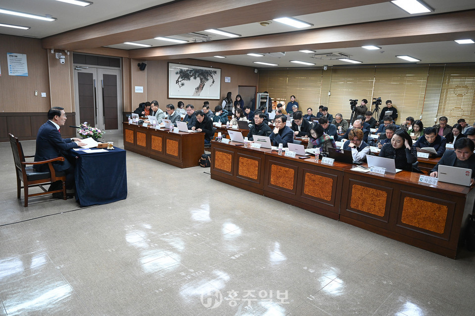 홍성군이 2일 군청 회의실에서 개최한 언론인과의 간담회에서 이용록 홍성군수는 성장과 희망이 가득한 ‘청사의 해’를 맞이해 홍성의 미래 먹거리 신산업을 집중 육성하고 지역의 백년대계를 그려나갈 분야별 6대 추진전략을 제시했다.
