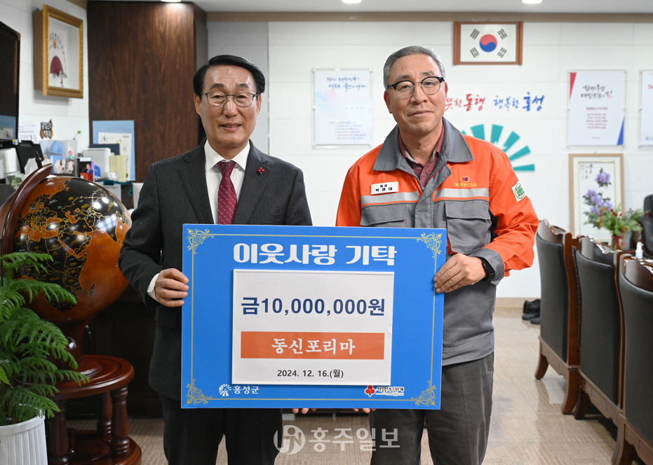 이용록 군수는 “동신포리마의 지속적인 기부는 지역사회의 귀감이 되고 있으며, 함께 상생하며 발전하는 홍성을 만들어 가는 데 큰 힘이 된다”며 감사의 뜻을 전했다.