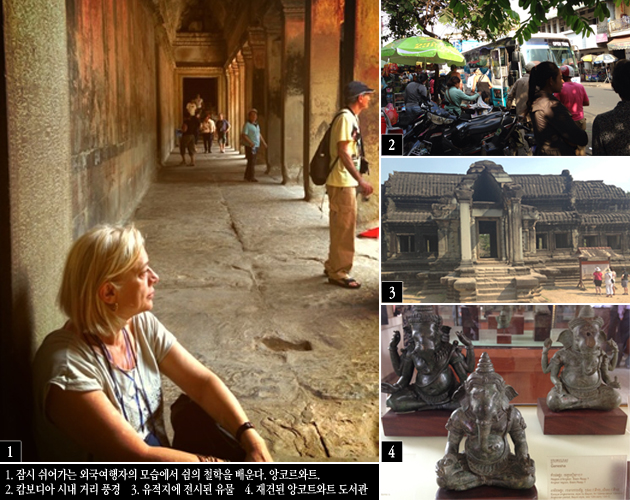 일정을 함께 한 이주민 여성의 아들 대성군의 어머니의 나라가 더 발전하고 성장하기를, 다문화 2세들의 문화적 교류장치와 어머니의 민족정신을 올곧게 받아들일 수 있기를, 더 나아가 먼 미래에 어머니의 나라에서 희망을 품을 수 있기를 바란다. 또 우리는 그 희망을 심어 줄 수 있도록 꾸준히 준비할 수 있기를 제도적 장치와 정책의 수반을 새로운 정부에 기대해도 좋을까? 모기와의 사투. 끊임없는 갈증, 물갈이로 속 타는 심정. 장소이동으로 긴 시간 앉아 있어야 하는 오래된 차량에서의 악취는 이루 말할 수 없이 얼굴을 찌뿌리게 만든다. 사실 여행 중의 불편함들은 늘 있지만, 여행의 순간에는 육체와 영혼의 살아있음을 실감한다. 이번 연수도 내가 어디에 있는지 나는 진정 무엇을 찾는 것인지, 또 여행기간의 관계성 속에서 끊임없는 궁금증으로 생각의 끈을 놓지 않을 수가 없었다. 하지만 곳곳의 유적지마다 미스터리한 이야기들로 신비로움을 간직하고 있는 앙코르와트. 유년시절의 순수함으로 돌아가는 시간 여행처럼 몇날 며칠을 꼬박 이야기해도 모자라는 평생 잊지 못할 여행지로 남게 되었다. 거기에서 장기체류나 해 볼까? 독자들에게 때 묻지 않은 자연경관과 훌륭한 문화유산이 가득한 캄보디아 여행을 권해본다.